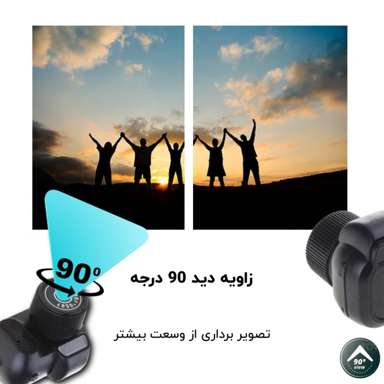 زاویه دید ۹۰ درجه برای ثبت تصویرهای عریض‌تر بدون نیاز به عقب رفتن یا تنظیم زیاد.