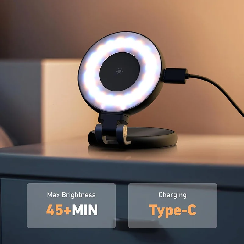 این رینگ لایت دارای باتری داخلی ۵۰۰ میلیآمپرساعتی است که از طریق USB-C شارژ میشود و دوام کافی برای چندین بار استفاده در طول روز دارد. بدنه از ABS + PC مقاوم و سبک ساخته شده و امکان استفاده روزمره و حمل آسان را فراهم میکند.