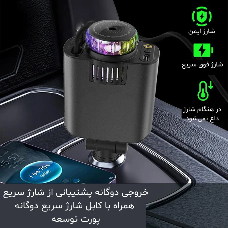 شارژر فندکی خودرو W&O مدل Starlight پنج کاره، فقط یک شارژر معمولی نیست؛ یک گجت چندمنظوره است که طراحی مدرن را با عملکرد واقعی ترکیب کرده تا تجربه رانندگی‌ات را کاملاً ارتقا دهد. این دستگاه کوچک، هم‌زمان نقش شارژر سریع، خوشبوکننده هوشمند، نورپردازی کابین و هاب چندمنظوره شارژ را برایت ایفا می‌کند و دقیقاً چیزی‌ست که هر خودرو امروزی باید داخلش داشته باشد.