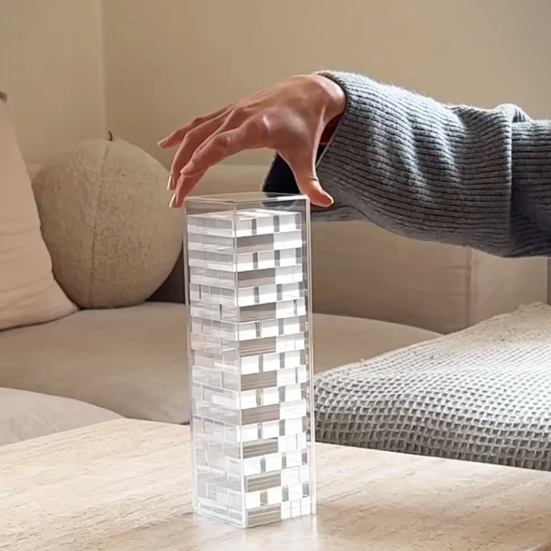 اما این فقط دکور نیست — این یک بازی مهارتی تعادلی است که حس رقابت و خنده را به جمع اضافه میکند. میتوانید بهصورت تکنفره برای تمرکز و آرامش ذهن بازی کنید یا با دوستان و خانواده یک رقابت هیجانانگیز بسازید.
